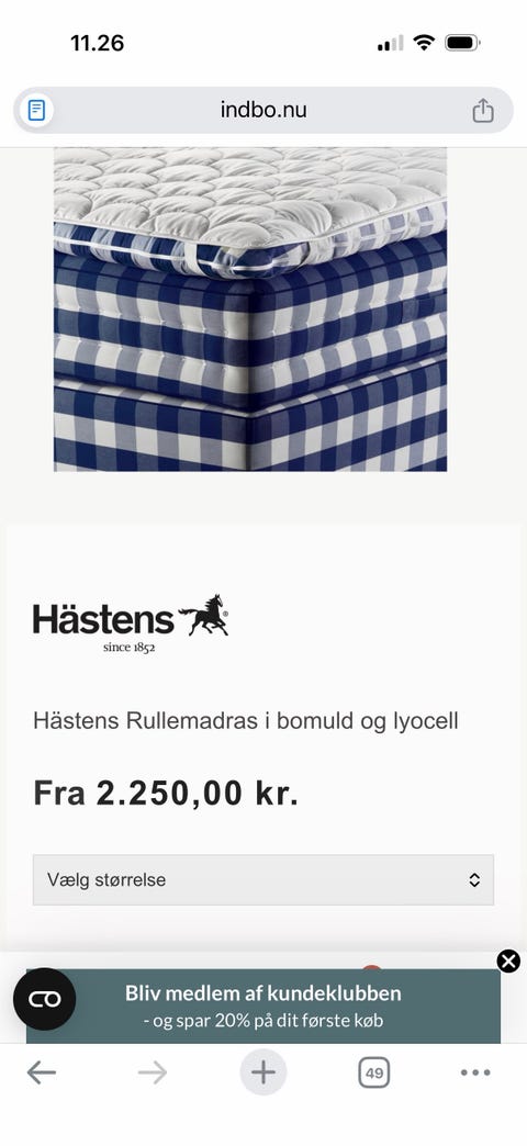 Hästens 2000T 1½-mands seng – 140x200 cm