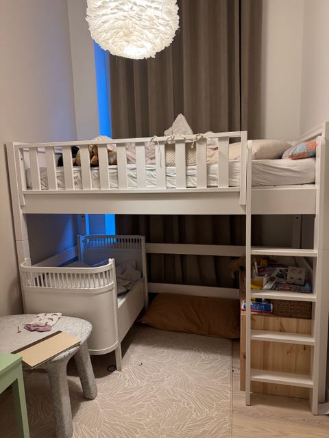 Højseng med sofa og skrivebord