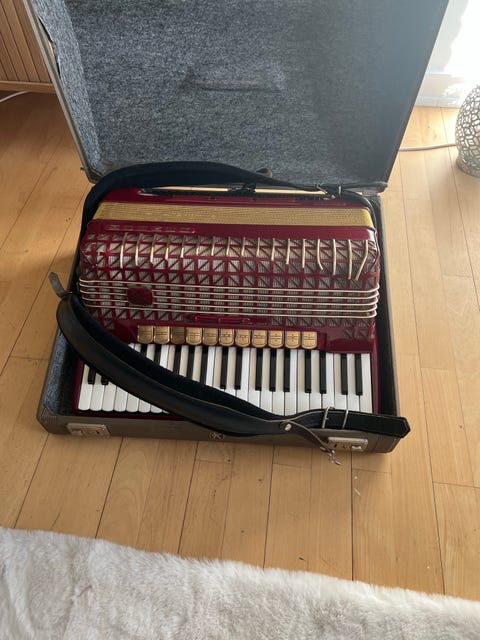Flot rød harmonika med kuffert