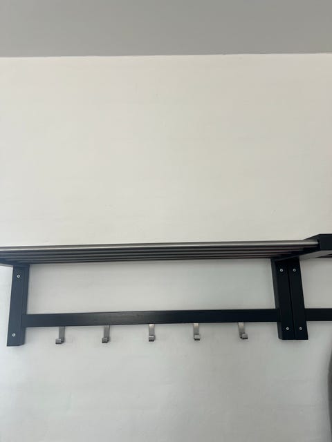 Lastein hattehylde, bøjler og spejl