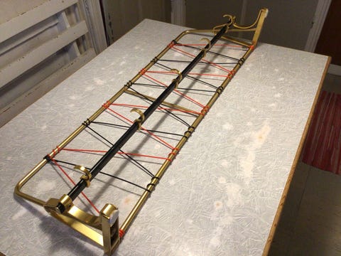 Hattehylde i messing.