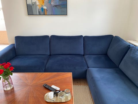 Velour hjørne sofa med open end