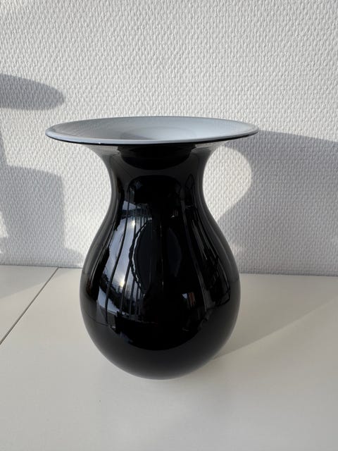 Stor sort/hvid opalglas skål