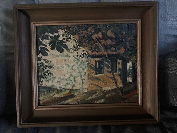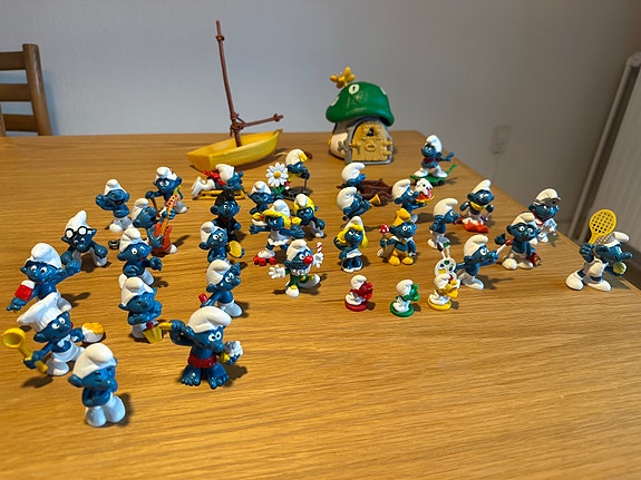 Retro smølfer m hus og båd