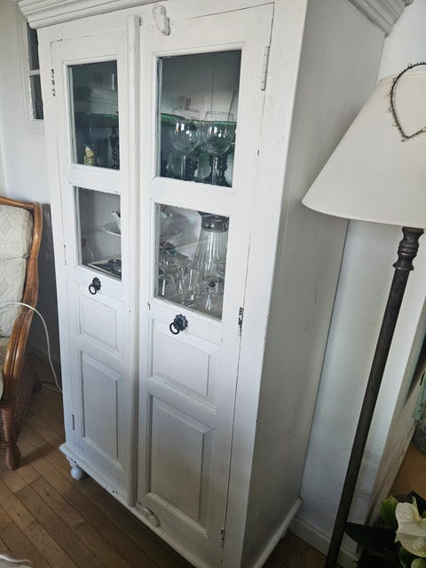 Hvidmalet fint vitrineskab