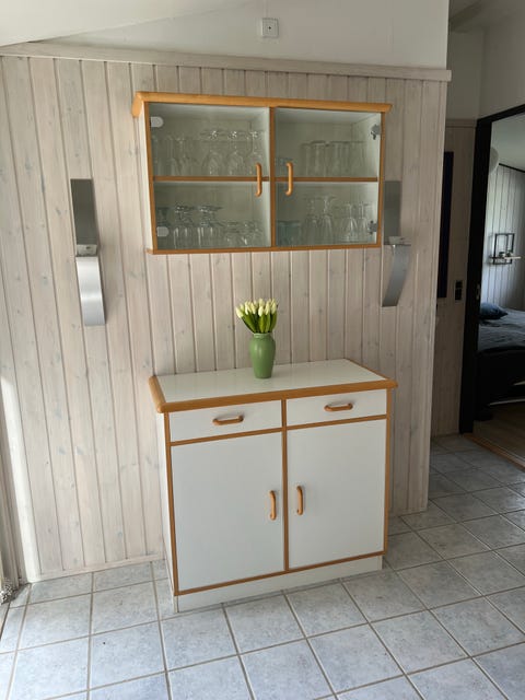 Fint hvidt vitrineskab.
