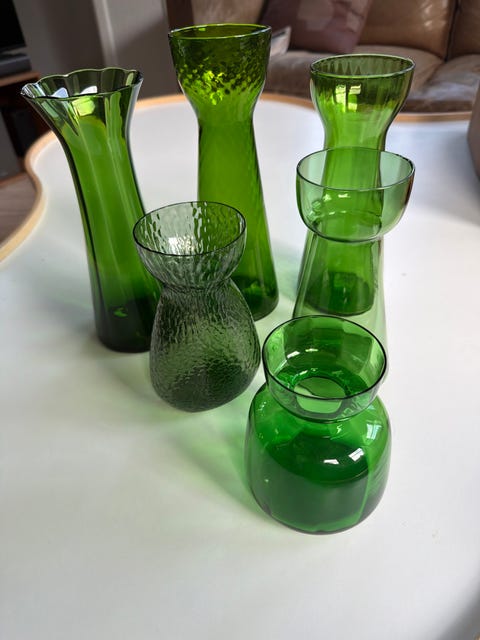 2 stk gl. grønne hyacintglas