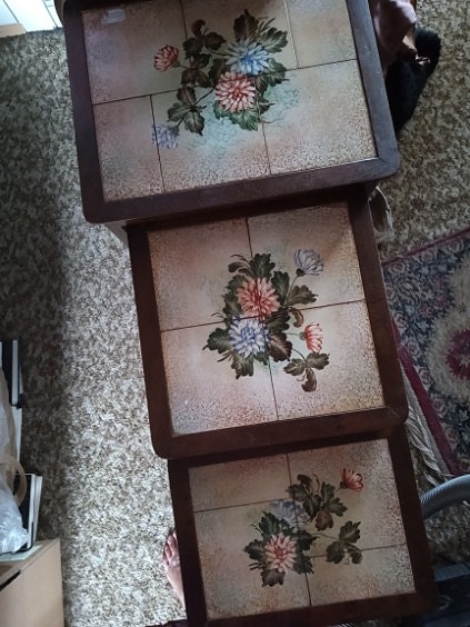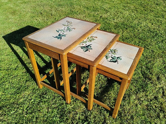 Tre indskudsborde med kakler