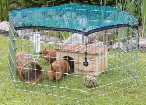 Kaninbur og løbegård med tilbehør