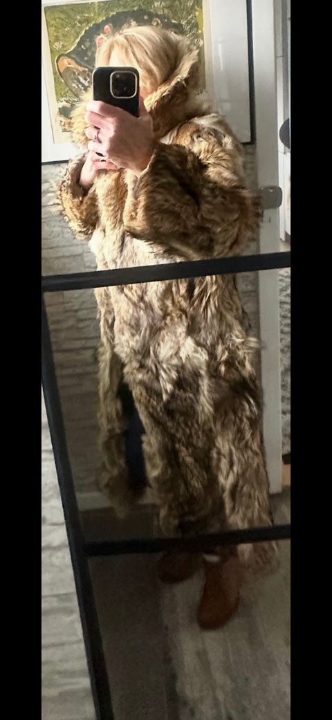 VINTAGE Jakke, str. 36, ZARINA, INDFARVET JAGUAR, KANINSKIND. ALDRIG BRUGT.