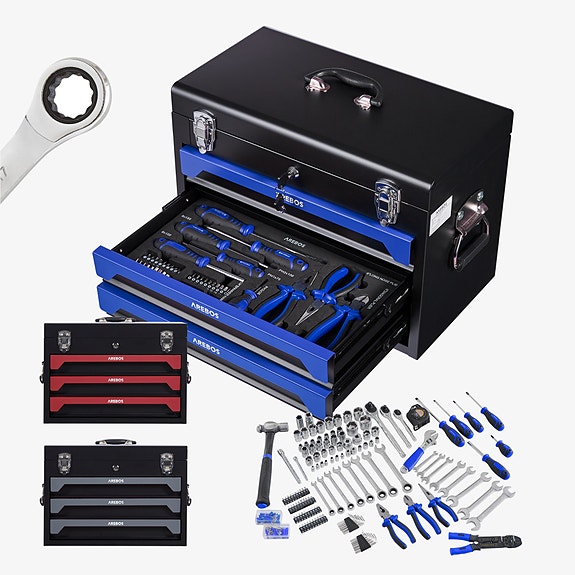 Arebos® Værktøjskasse inkl. 172 dele krom vanadium-værktøjssæt, 3 rum - Blå