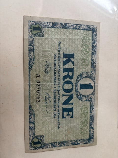 Danmark 1 krone seddel