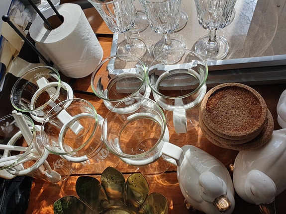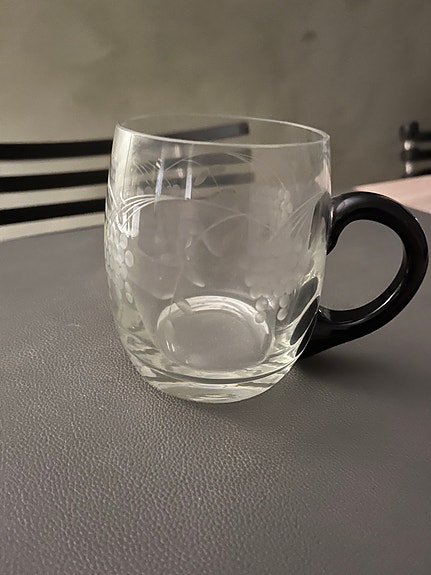Glas krus med sort hank