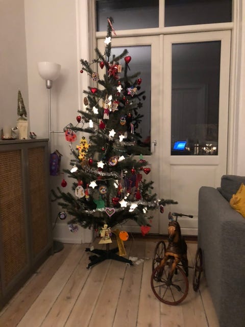 Kunstigt juletræ med pynt