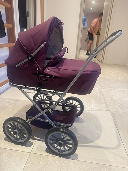 dukkevogn i kurv med hjul