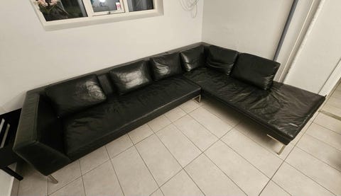 AFVENTER Sort lædersofa fra Skalma
