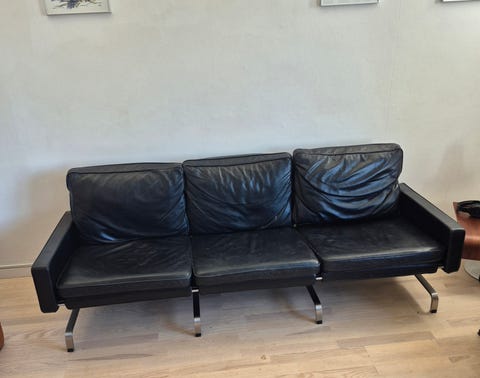 Sort lædersofa 3-personers