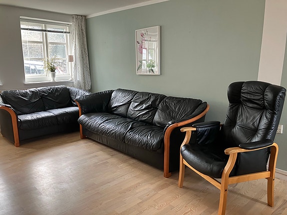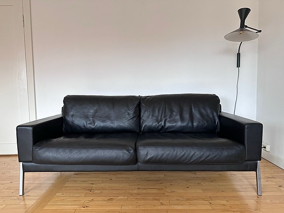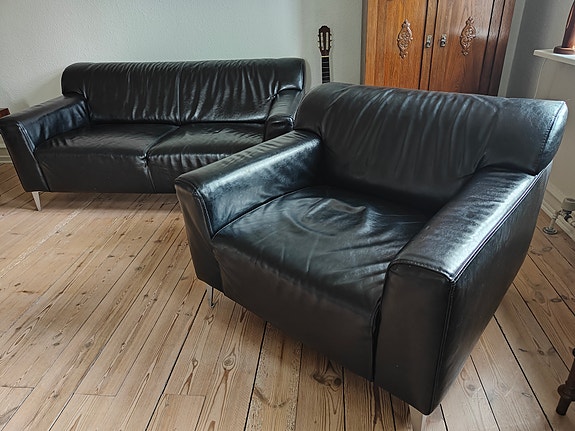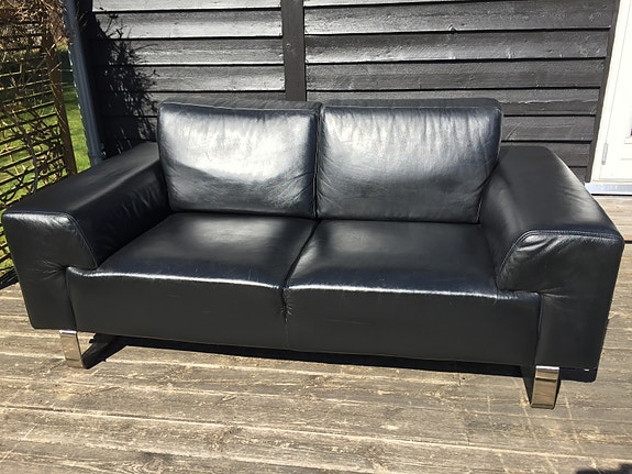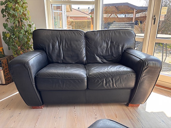 Lædersofa sort 2 pers | Til salg