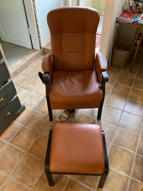 Lænestol og skammel.