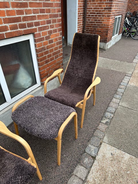 Ny loungestol bøg/eg og stof/læder.