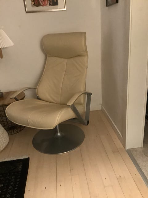 Beige læder lænestol med fodskammel
