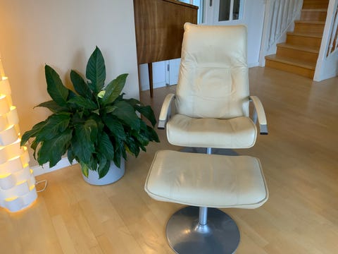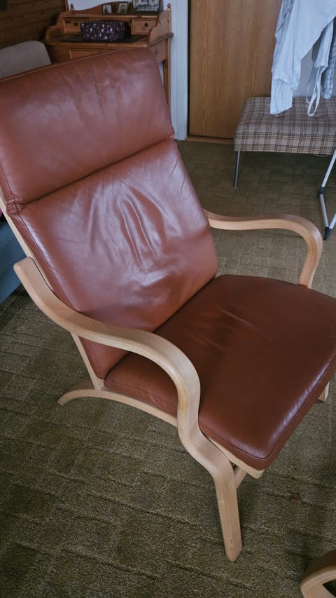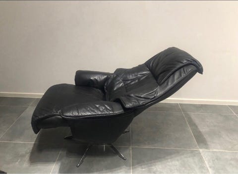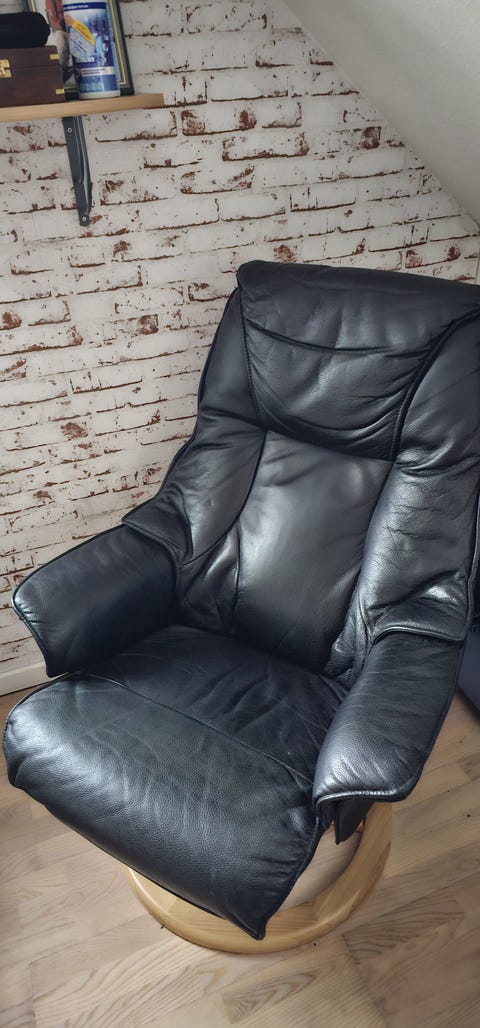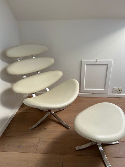 Fritz Hansen Arne Jacobsen Ægget Lænestol med skammel i Walnut elegance læder.