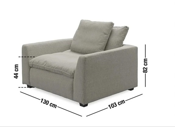 Lænestol i gråt riflet stof