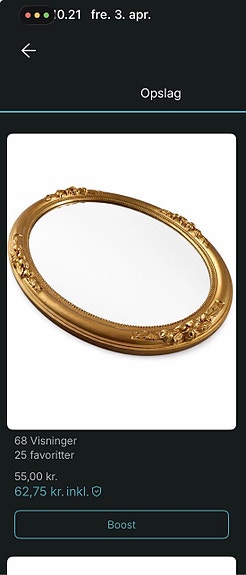 Spejl med med guldkant