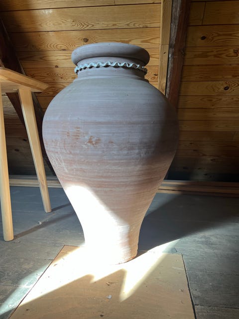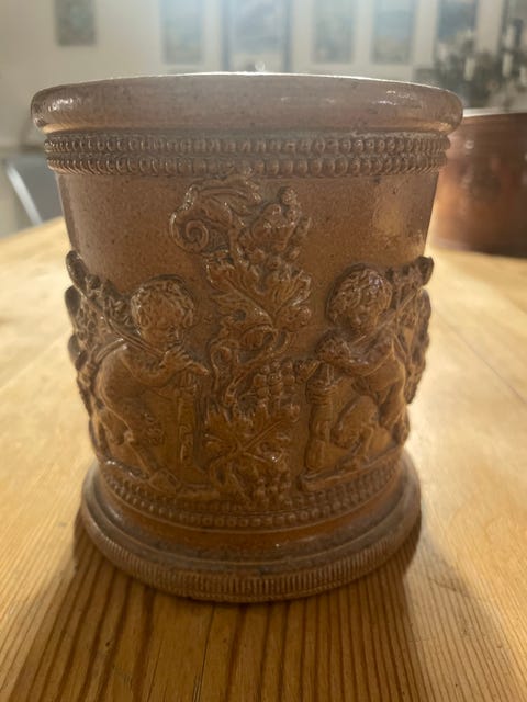 Krukke, ler og glassur, 100 år gl.