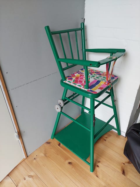 Gammeldags grønmalet højstol