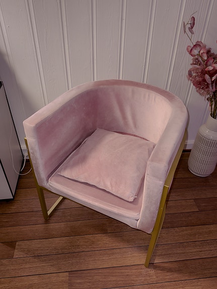 Lyserød lænestol i velour