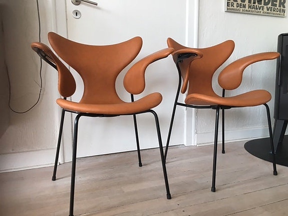 Arne Jacobsen AJ3208 /Mågen. Eg /niger skind Design 1960 1970 erne. Fritz Hansen