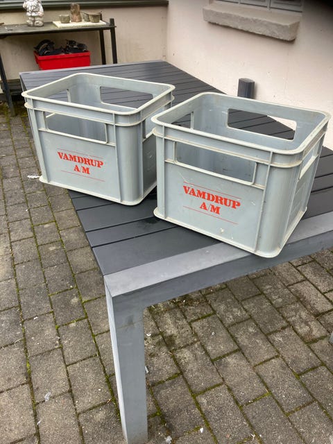 Gamle mælkekasser i plast