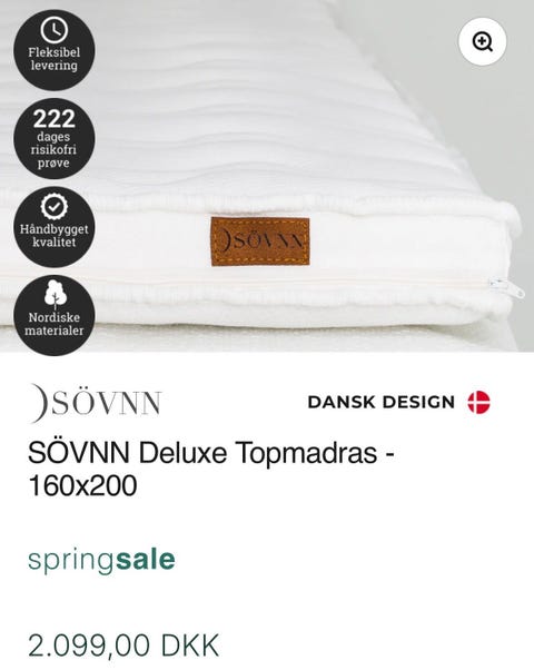 Helt ny - Deluxe 160x200 topmadras