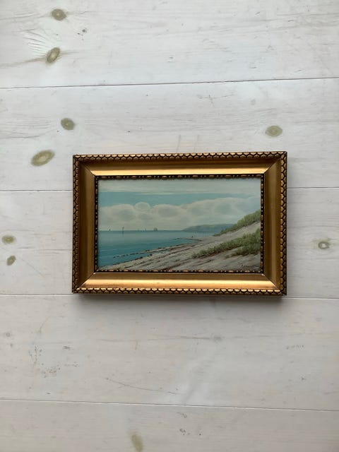 Maleri Landskab med Klipper og Hav