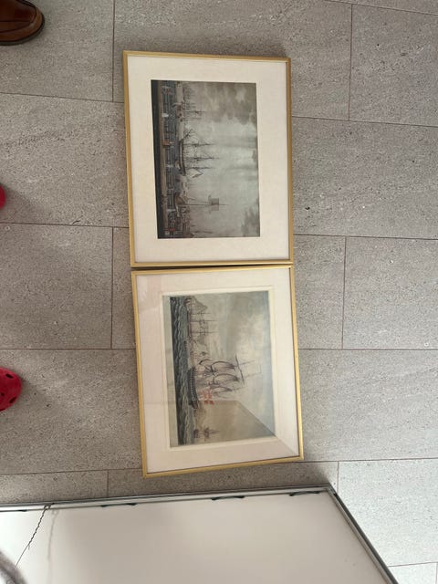 Maleri af skibe i havn i ramme 2 stk