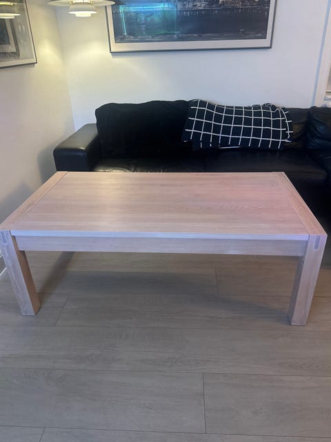 Sofabord i massiv sæbebehandlet eg.