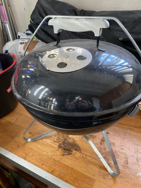 Grå metal spand med låg