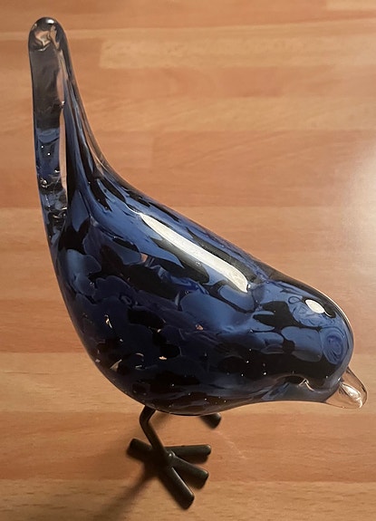 Glas fugl på sort metal fod