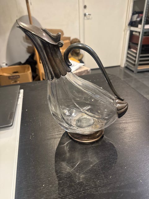Glas og metal kande med låg