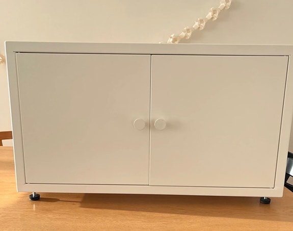 Metal skab med låger blå og hvid