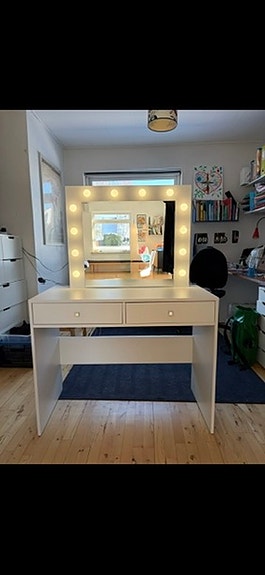 Sminkebord med spejl og lys