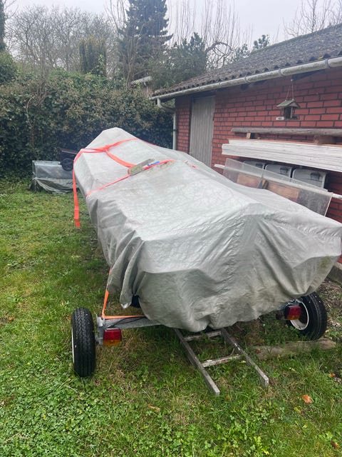 Jolle incl mercury 6,5 hk. Påhængsmotor