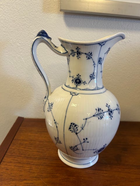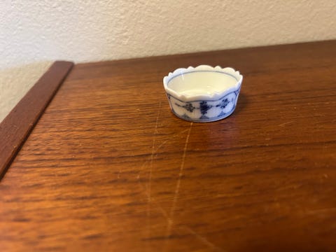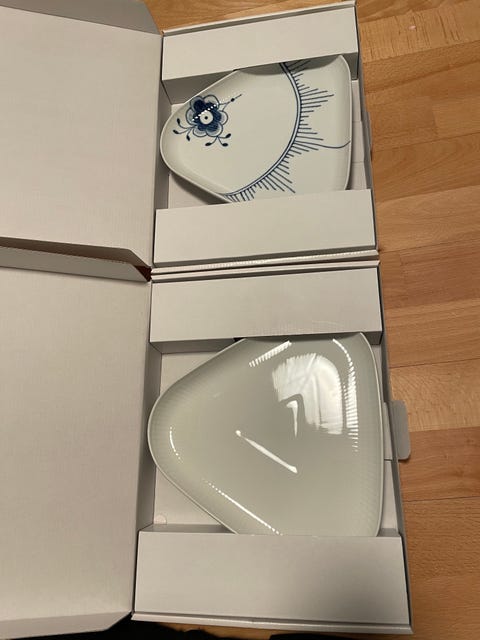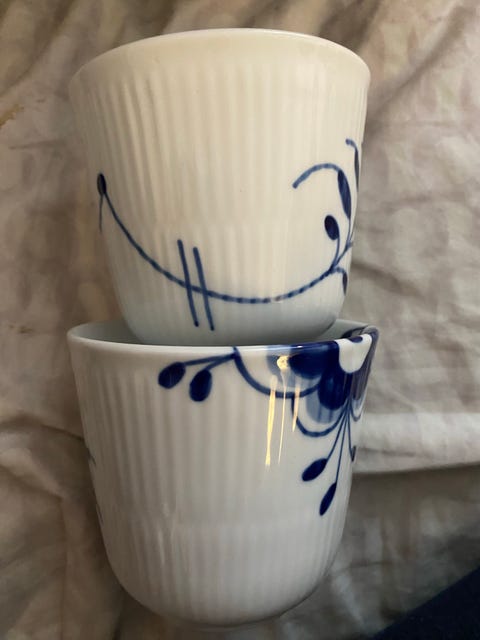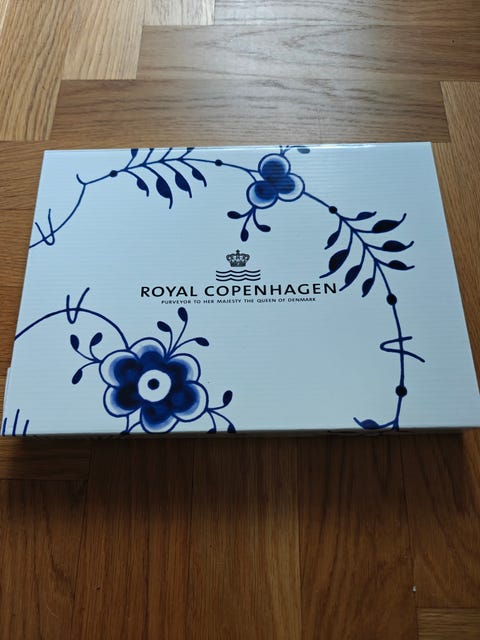 Royal Copenhagen mussel kaffekop med underkop og kagetallerken porcelæn hvid/blå