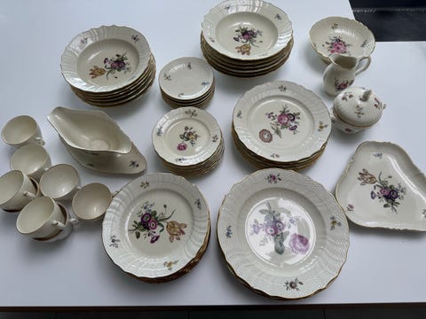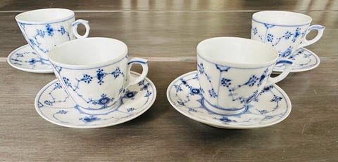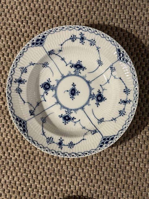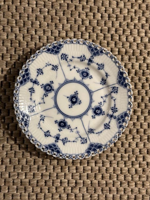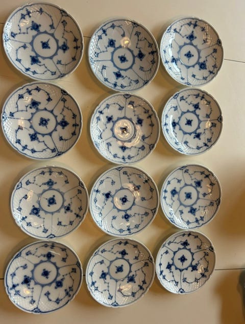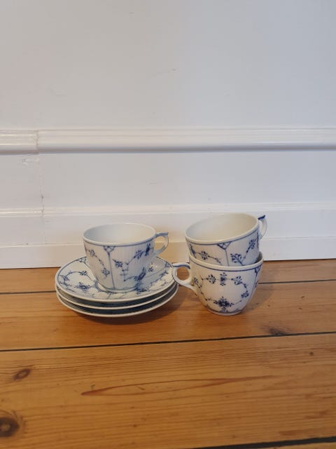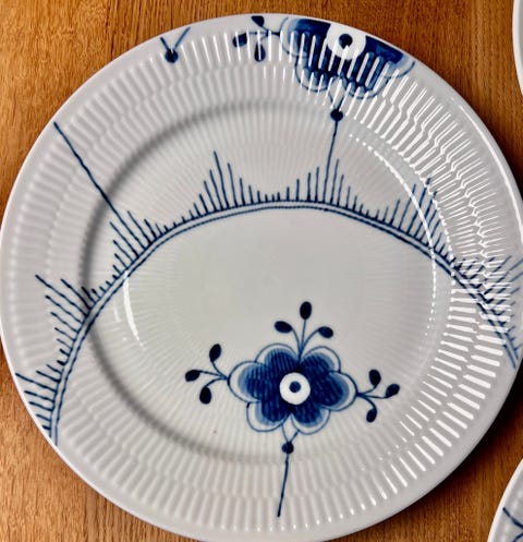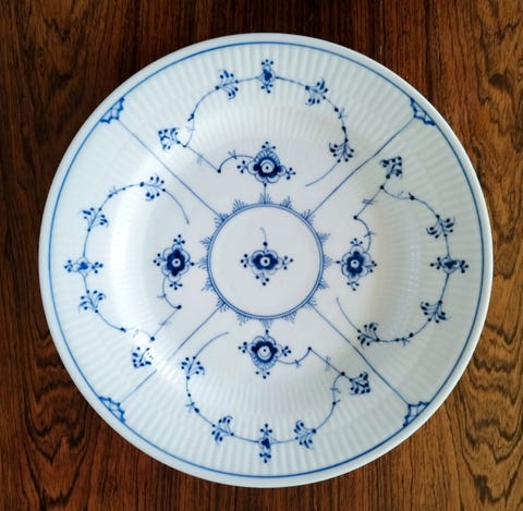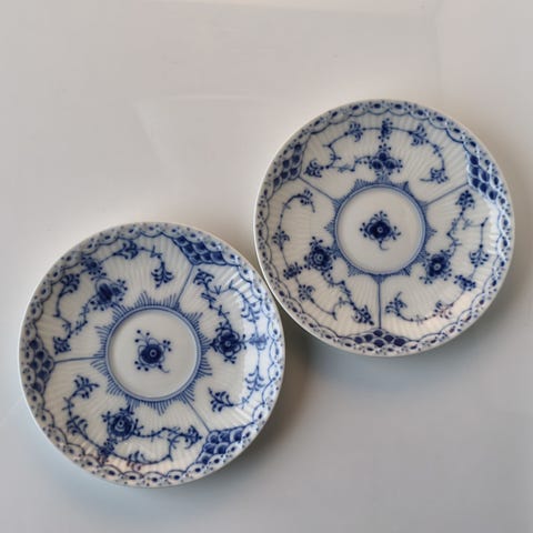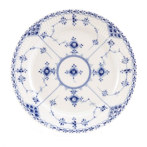 Royal Copenhagen Musselmalet Riflet Tallerken Sæt Porcelæn Blomstermønster