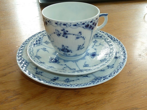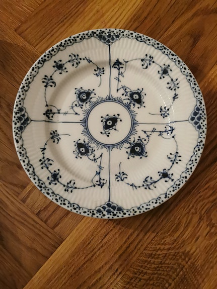 Musselmalet kage tallerken | Til salg