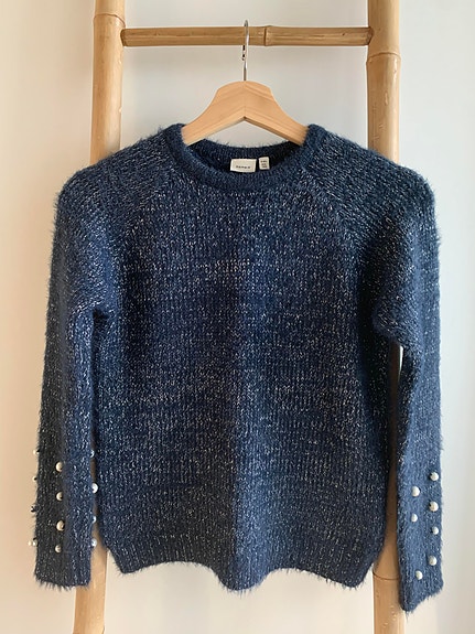 Smart langærmet turkisblå bluse fra Name it i str. 104 (4 år) - næsten som ny!