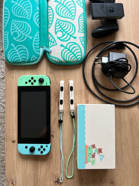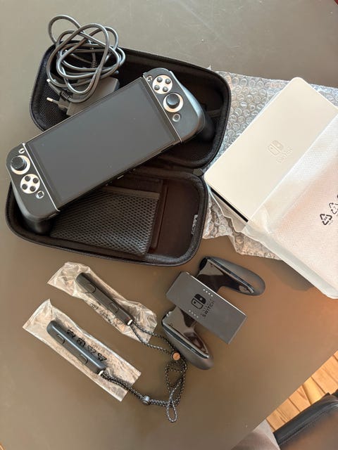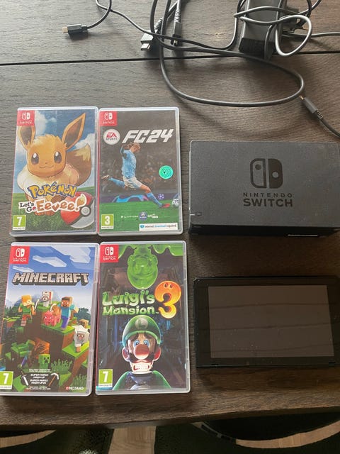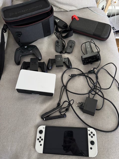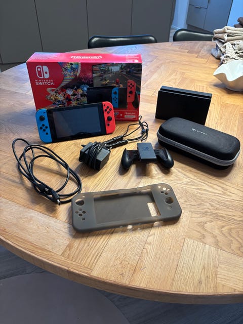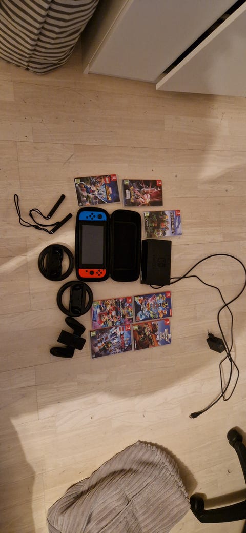 nintendo switch med tilbehør og spil