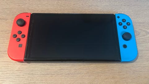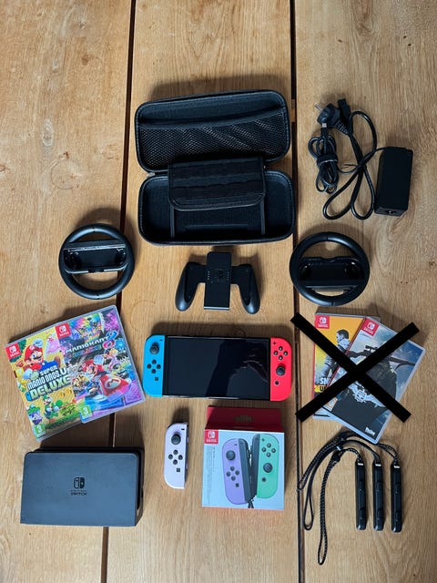 Nintendo Switch OLED Spillekonsol med hvide Joy-con controllere og Minecraft CD
