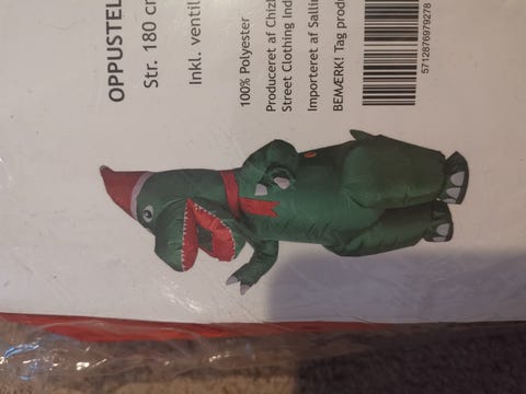 Kostume til jul og halloween. Oppustelig. Helt ny. Dino